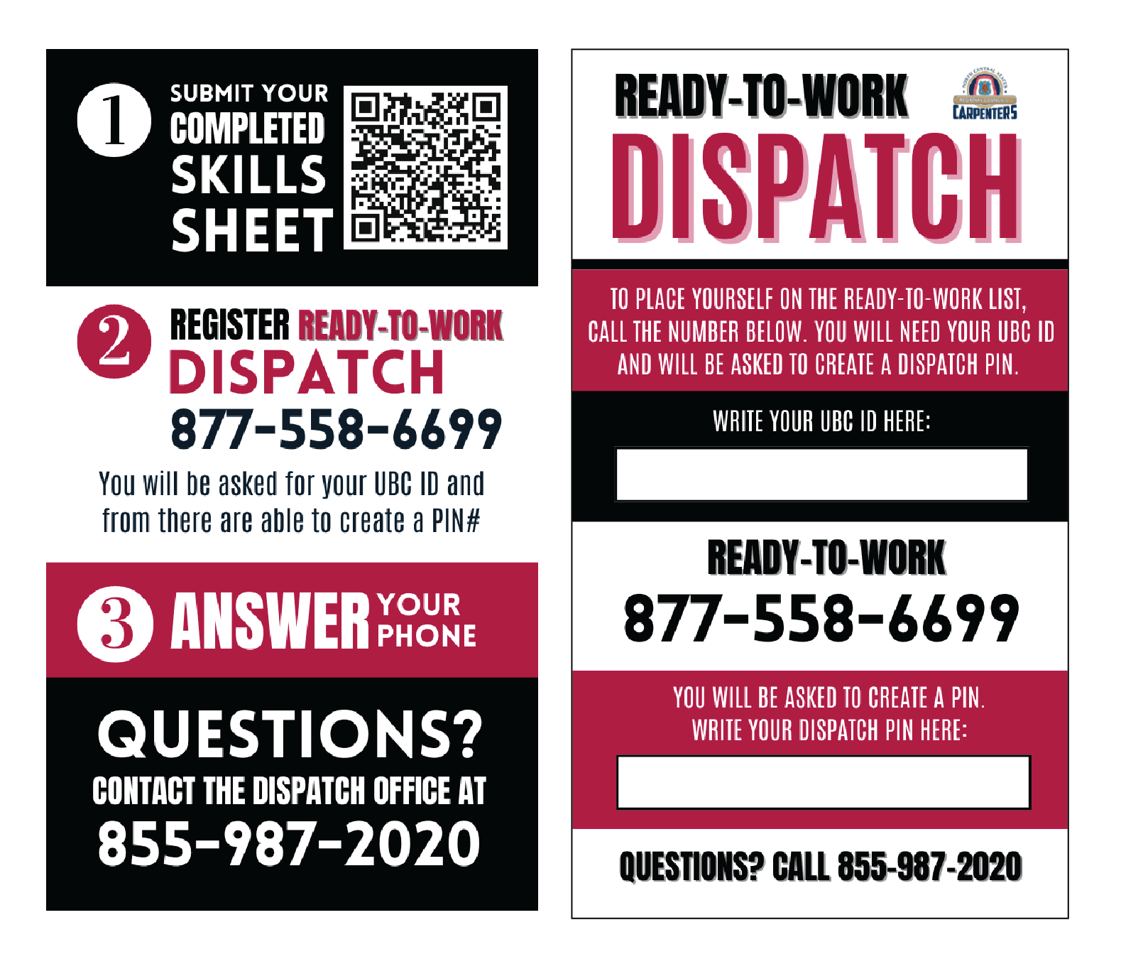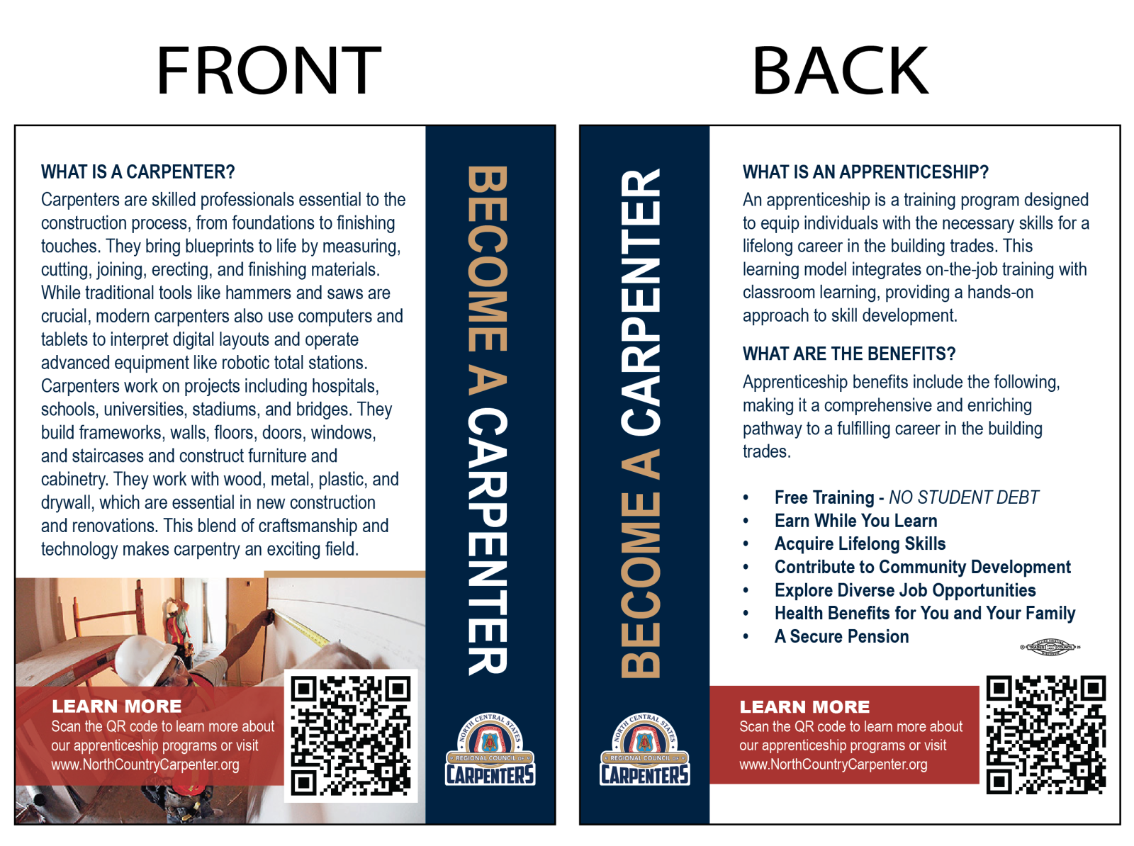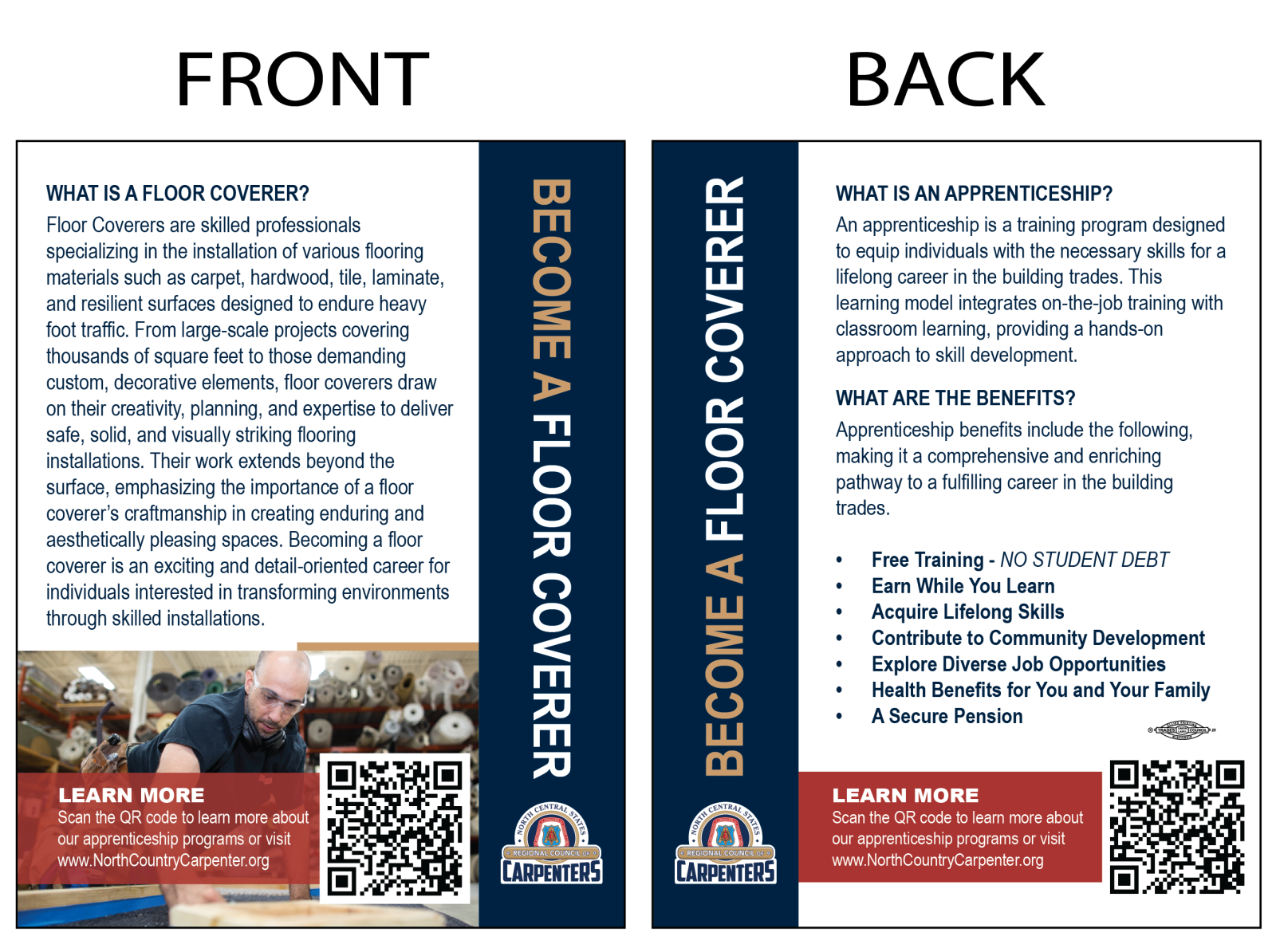 4.25 inches wide by 5.5 inches tall Two-sided, full color, cardstock with QR code.