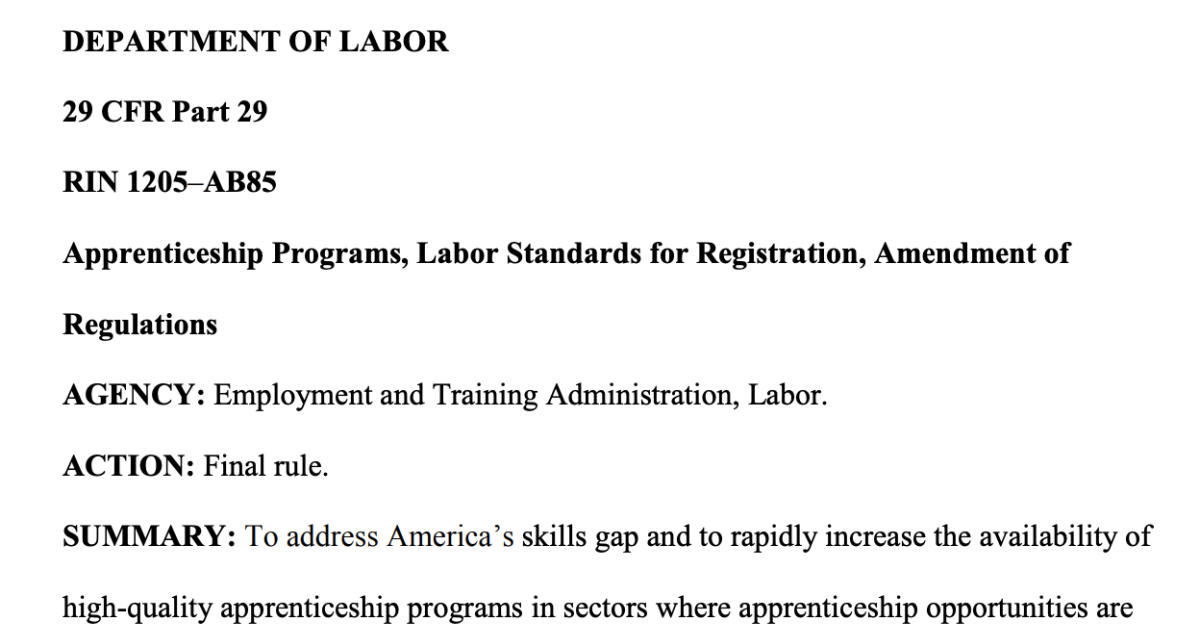 The DOL justified its exclusion of construction by stating that its goal is to “expand apprenticeships to new industry sectors and occupations and industries where apprenticeships are emerging or underutilized.” The DOL saw no reason to disrupt current apprenticeship programs.