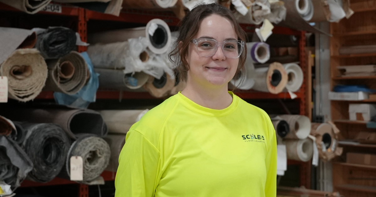 Her love for the trade comes from her desire to work with her hands and the artistry involved in floor installation. She primarily works with resilient flooring with Schleis and is gaining hands-on experience on jobsites and in class at the St. Paul Training Center.