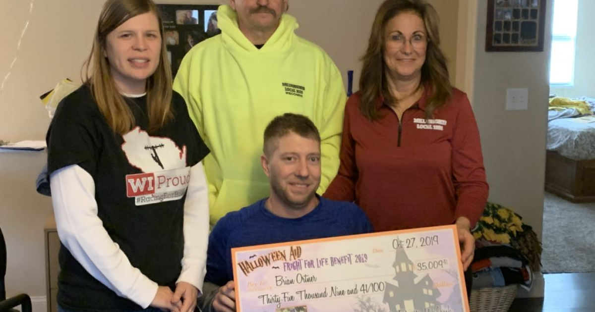 On Nov. 26, organizers gave thanks by presenting funds raised from the annual Fright for Life Halloween Aid party to the Brian Ortner family. Brian’s fellow union member also won this year’s raffle and donated $2,000 of his winnings to the Ortner’s in a generous display of solidarity.